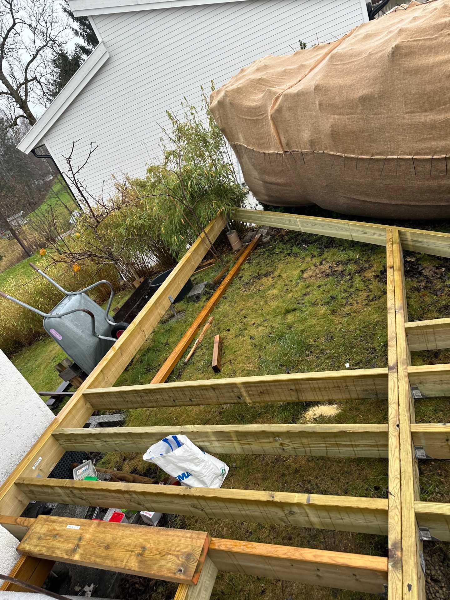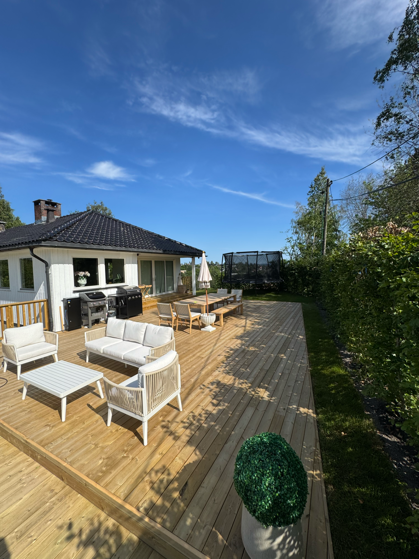 På bildene under ser du to ferdigstilte prosjekter: én veranda og én terrasse. Begge løsningene er tilpasset kundens behov og utformet for å gi funksjonelle og estetiske uteområder.